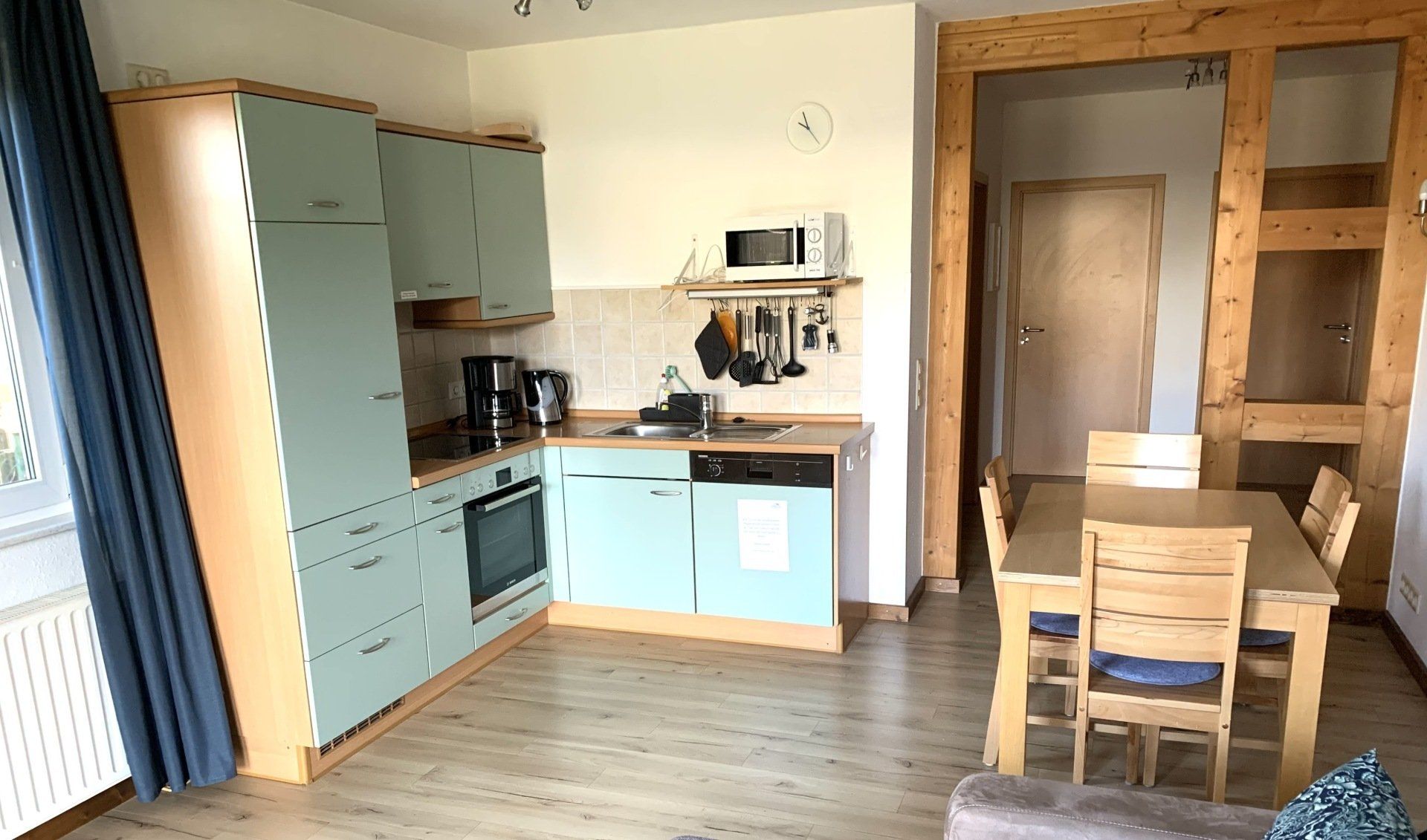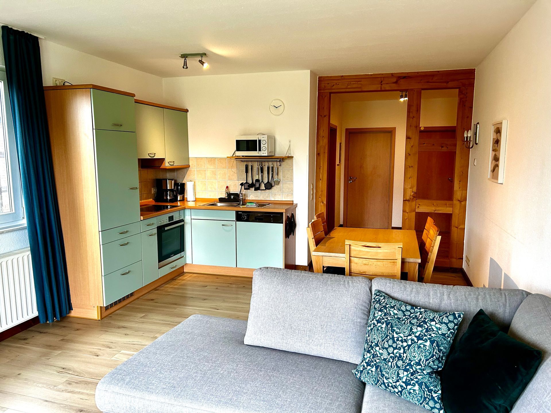 Die Ferienwohnung bietet mit einer großzügigen Küchenzeile, zwei getrennten Schlafzimmern, einem gemütlichen Wohn- und Essbereich sowie einem Duschbad Komfort für alle Lebensbereiche.