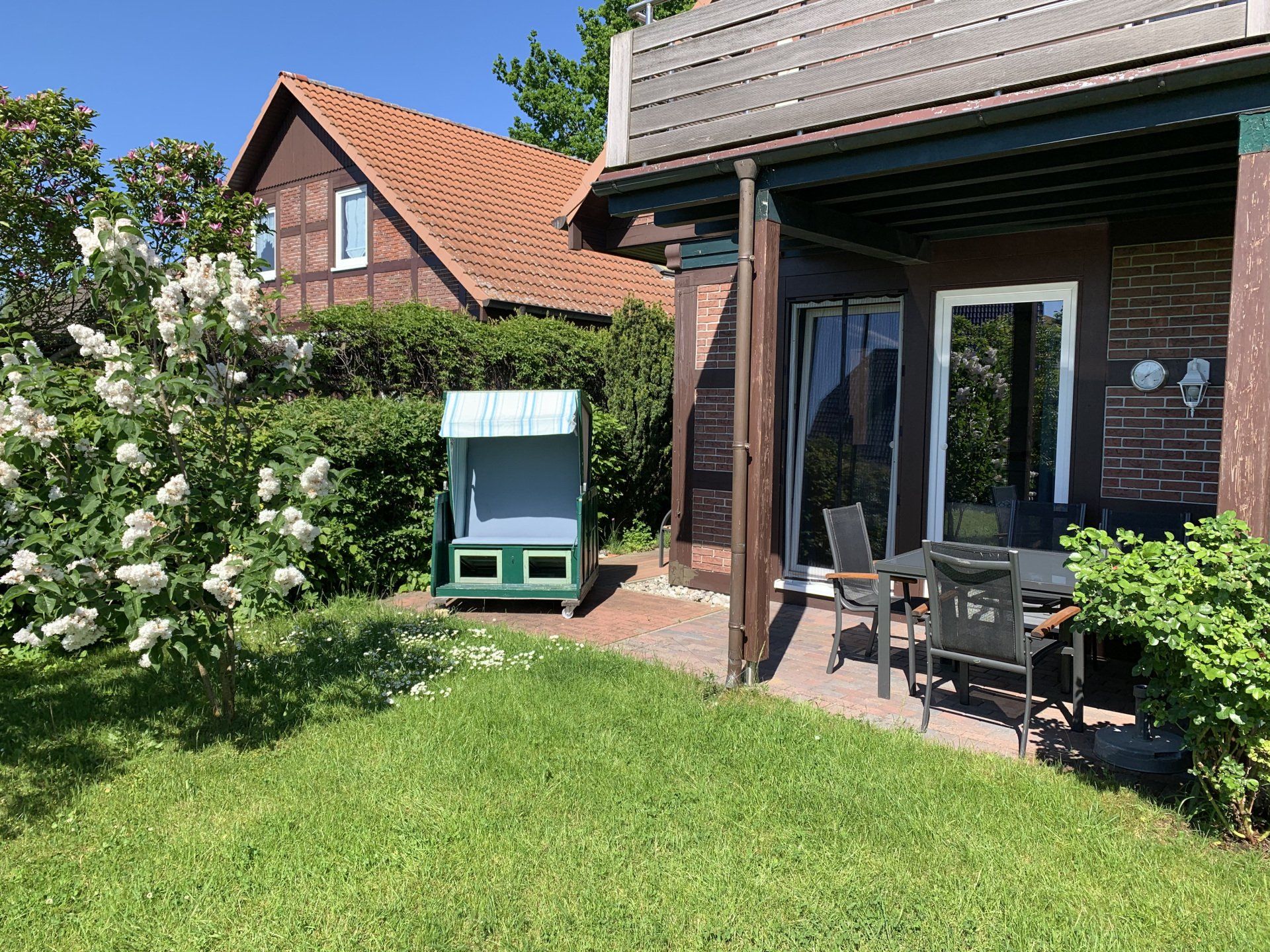 Darüber hinaus bietet die Wohnung einen direkten Zugang zum Garten mit eigener Terrasse, Sitzgruppe und Sonnenschirm.